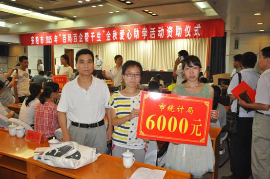 安阳市统计局出资6000元,对今年考上“河南警察学校”的张婧宇和“郑州大学”的张琬璐2名特困职工子女分别给予了3000元的助学金。